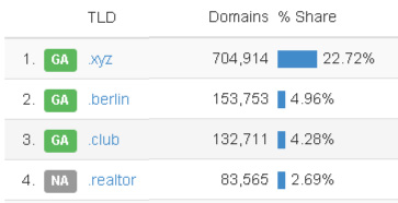 .xyz穩(wěn)占據(jù)新頂級域名注冊排行榜首位