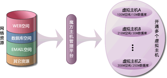 可根據(jù)客戶需求開通多個(gè),范圍內(nèi)任意配置的虛擬主機(jī),每個(gè)虛擬的容量、流量、綁定域名數(shù)可任意設(shè)置和隨時(shí)調(diào)整,如可開通188M,210M等任意容量的虛擬主機(jī)