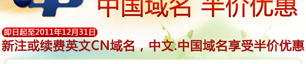 中文.cn域名 可享半價優惠! |