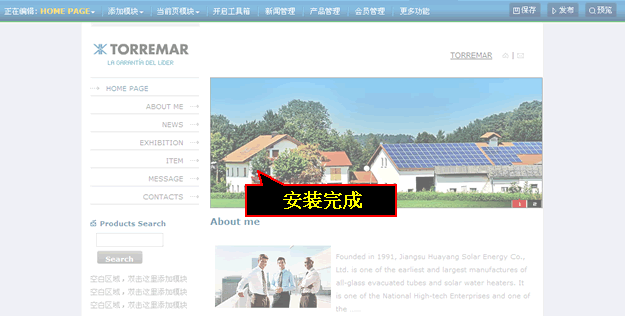 第一次用建站寶盒,填寫(xiě)完基本資料后可直接安裝模板
