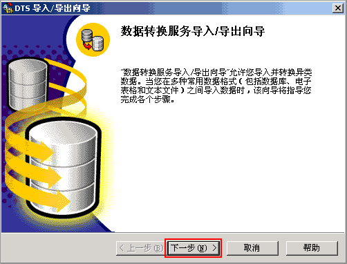 | 2. 進入DTS導入/導出向導,點擊“下一步”按鈕繼續 | |