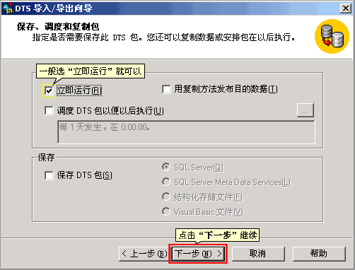 | 7. 設定調度方式,一般選“立即運行”就可以,然后點“下一步”繼續 | |