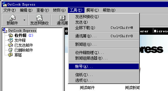 選擇工具項(xiàng) 帳號(hào)項(xiàng)后彈出下圖