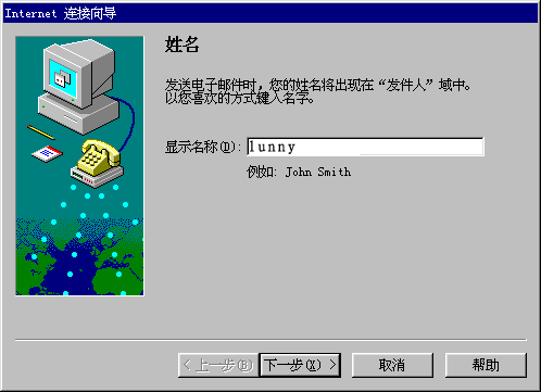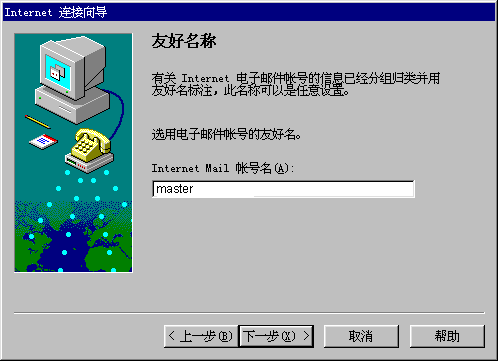 此處填寫(xiě)的是在Outlook express 中您的英文或者拼音名字。它并不影響您的任何工作,只是在您有多個(gè)郵箱時(shí)可以用來(lái)標(biāo)識(shí)是哪個(gè)信箱。至此,您已經(jīng)簡(jiǎn)單的設(shè)置完您的一個(gè)信箱。再進(jìn)行簡(jiǎn)單的幾步設(shè)置,就可以開(kāi)始使用信箱了。