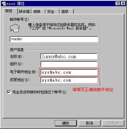 此處填寫(xiě)的是以你的名字為前綴,并以您單位的域名為后綴的標(biāo)準(zhǔn)格式電子郵件。如:xxx@abc.com